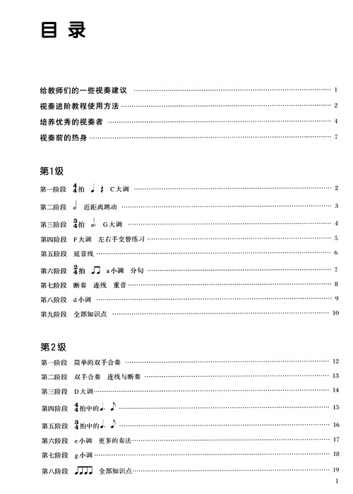 鋼琴視奏進階教程-1-5級-教師用書 目錄