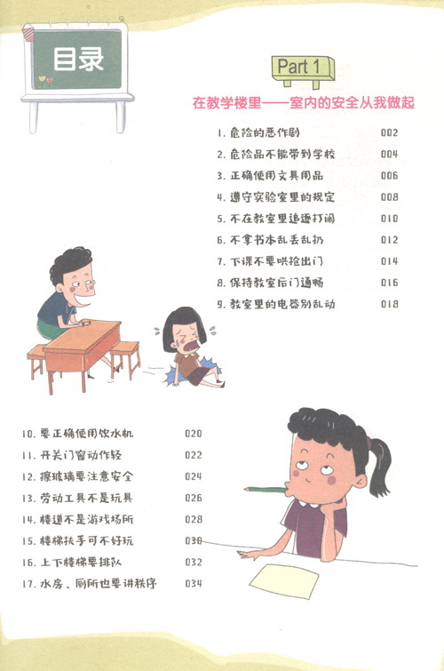 《我要愛自己:兒童自我保護安全教育讀本》總共包含《人身保護篇》《平安校園篇》《法制學習篇》《生活避險篇》《游玩謹慎篇》《災害逃生篇》這六本書,是專門為小朋友量身打造的安全書,每本書都是家長*關注、孩子*常遇到的安全問題。這套書中從小朋友們喜歡的閱讀角度出發,通過“小記者采訪”的形式,搭配可愛、有趣的卡通漫畫,讓小朋友們掌握必要的安全常識。書中語言簡單易懂,既有*基本的安全知識,能提高小朋友的安全意識,同時還有實用的安全方法,幫助小朋友學會防范生活中的各種危險,教會小朋友在不同的場景下應該怎么做、不應該做什么,以及遇到危險時如何正確處理。此外,本套書還有配有各種各樣的安全標志、安全細節,是名副其實的全方位兒童安全書。
